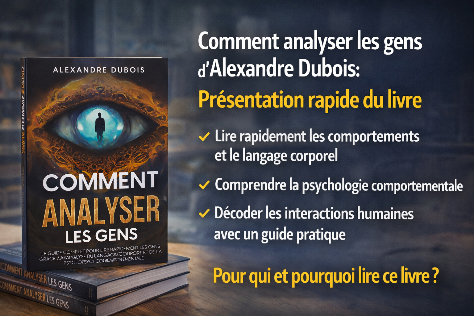 Comment analyser les gens d’Alexandre Dubois est un livre qui s’inscrit clairement dans la catégorie des ouvrages de psychologie pratique. Son idée centrale est simple : apprendre à mieux lire les comportements humains, mieux repérer certains signaux, et comprendre plus finement ce que les gens montrent ou cachent dans leurs interactions.
