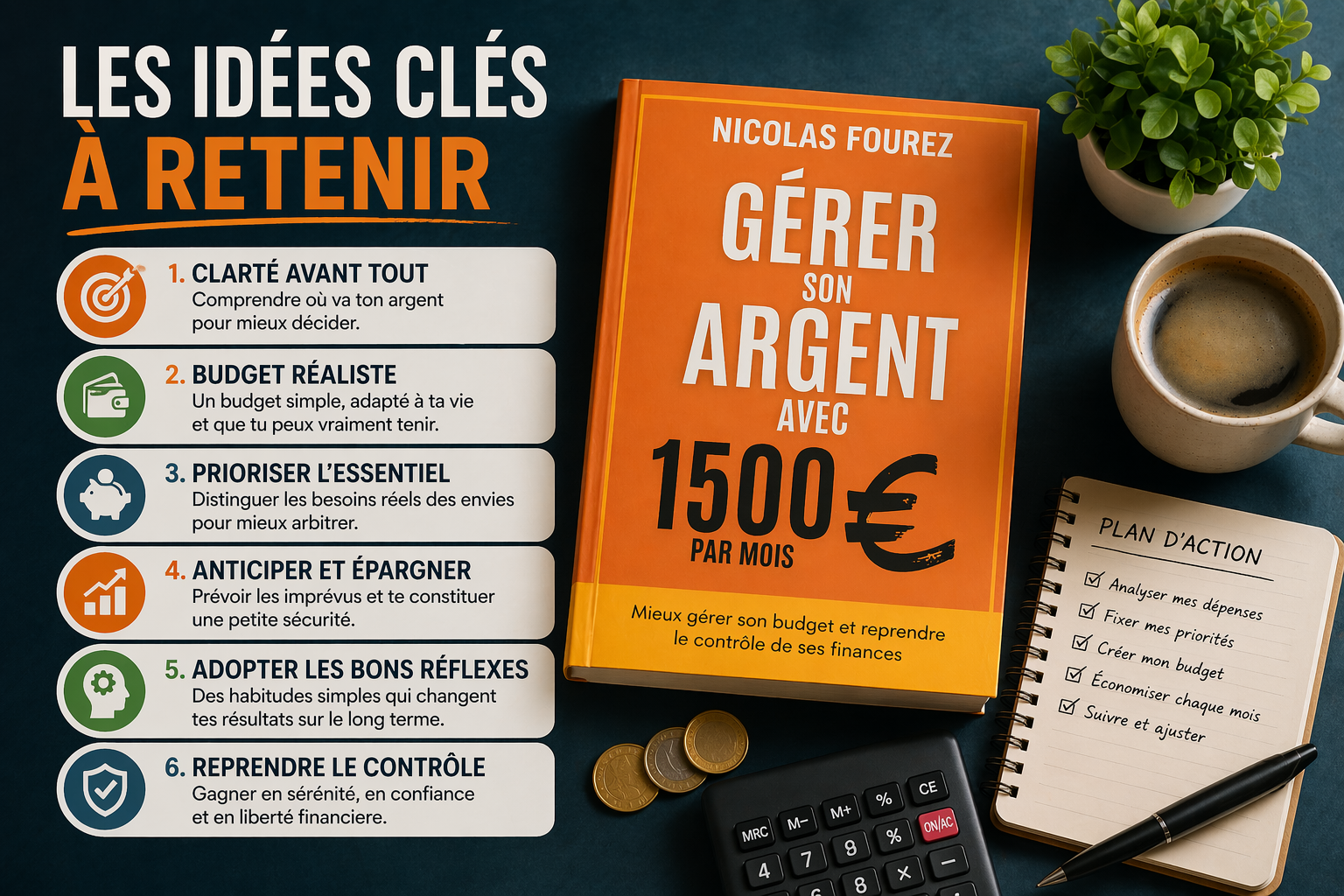 Ce type de livre repose souvent sur quelques idées fortes, simples à retenir mais puissantes à appliquer. Ce sont elles qui font la différence entre une lecture inspirante pendant deux jours et une vraie amélioration du quotidien. Derrière le titre « Gérer son argent avec 1500€ par mois », on peut dégager plusieurs idées clés particulièrement utiles.