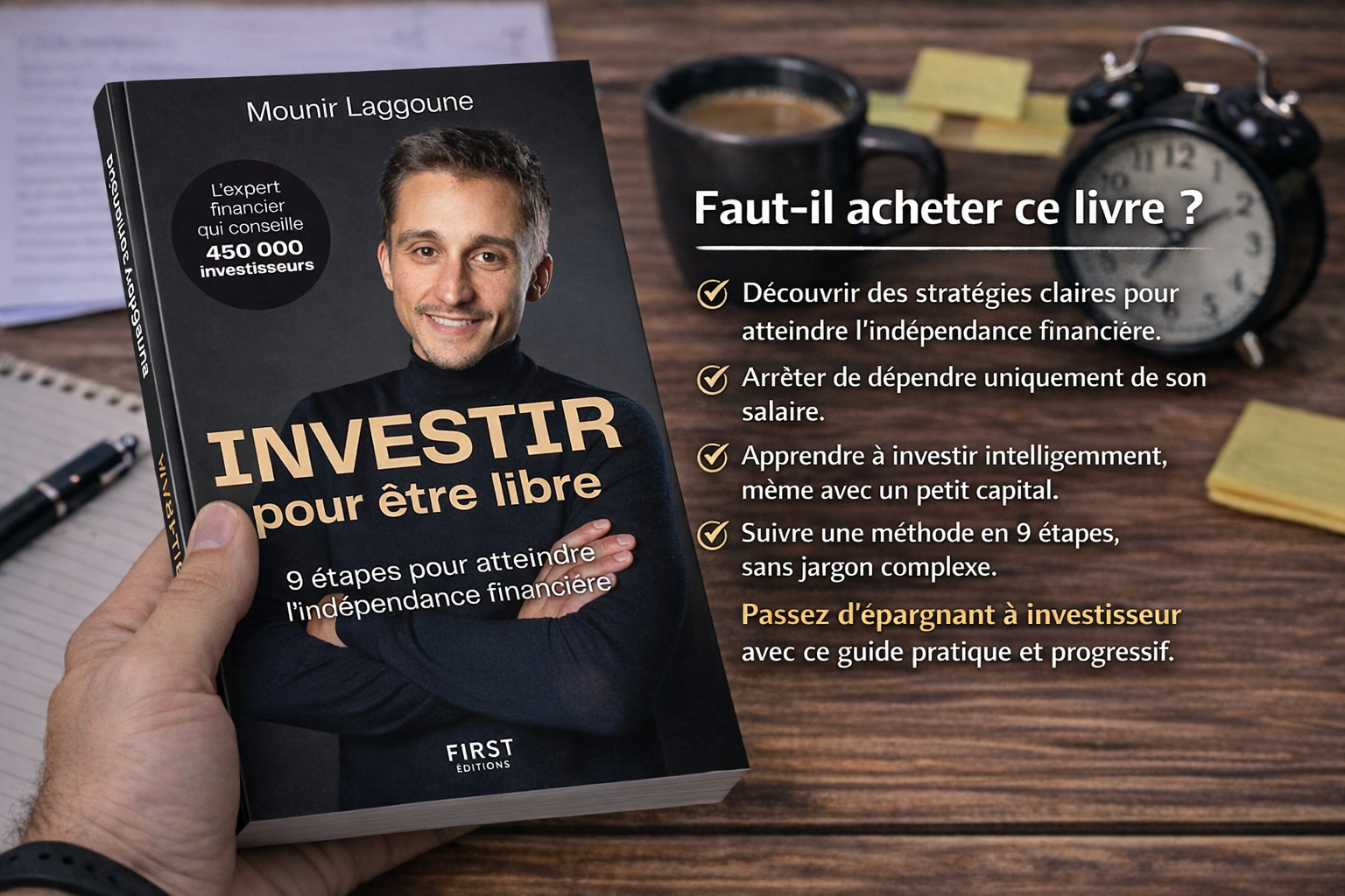 Dans Investir pour être libre : 9 étapes pour atteindre l’indépendance financière, Mounir Laggoune propose un cheminement clair pour passer d’une situation financière subie à une situation financière maîtrisée. Le livre ne se lit pas comme un manuel technique, mais comme une progression logique, étape après étape, pensée pour des personnes qui veulent comprendre comment devenir financièrement libres dans la vraie vie.