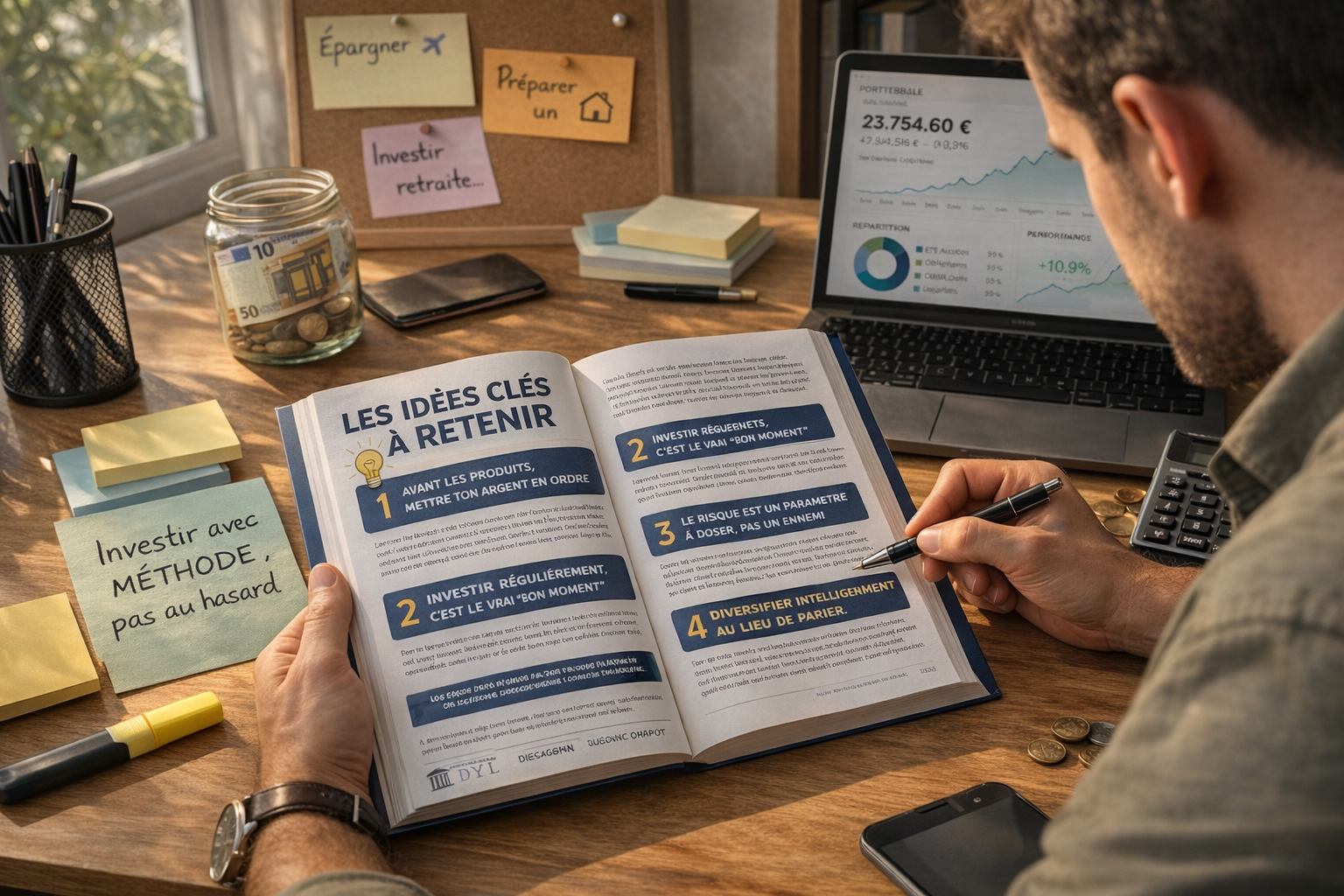 L’idée centrale du livre est simple : investir son épargne n’est pas une question de chance, mais de méthode. Beaucoup de débutants cherchent un “meilleur placement” comme s’il existait une réponse universelle. Le livre martèle au contraire qu’un bon investissement est un investissement adapté à ton objectif, ton horizon et ton niveau de risque acceptable. Cette approche change tout, parce qu’elle évite les décisions impulsives, les comparaisons sans fin et les choix dictés par la peur ou l’euphorie.
