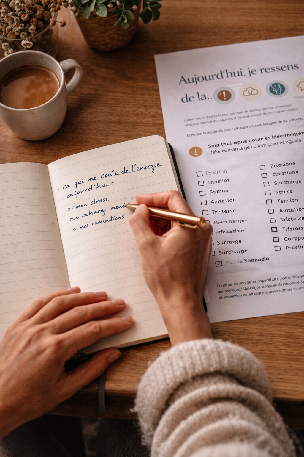 Enfin, tu apprends à mesurer ton énergie de façon plus intelligente. Au lieu de te demander “Pourquoi je suis encore fatigué ?”, tu commences à te demander “Qu’est-ce qui me coûte de l’énergie aujourd’hui ?” et “De quoi ai-je besoin pour redescendre ?”. Ce changement de perspective te donne un levier concret. Tu passes d’une fatigue subie à une fatigue comprise, et c’est souvent là que l’énergie commence à revenir.