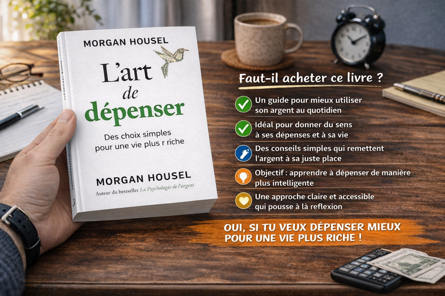 Enfin, le message global semble être que l’argent doit servir la vie, pas l’inverse. C’est sans doute la grande force du livre. Il ne parle pas seulement de dépenses. Il parle de cohérence, de choix et d’une définition plus intelligente de ce que signifie “vivre richement”.