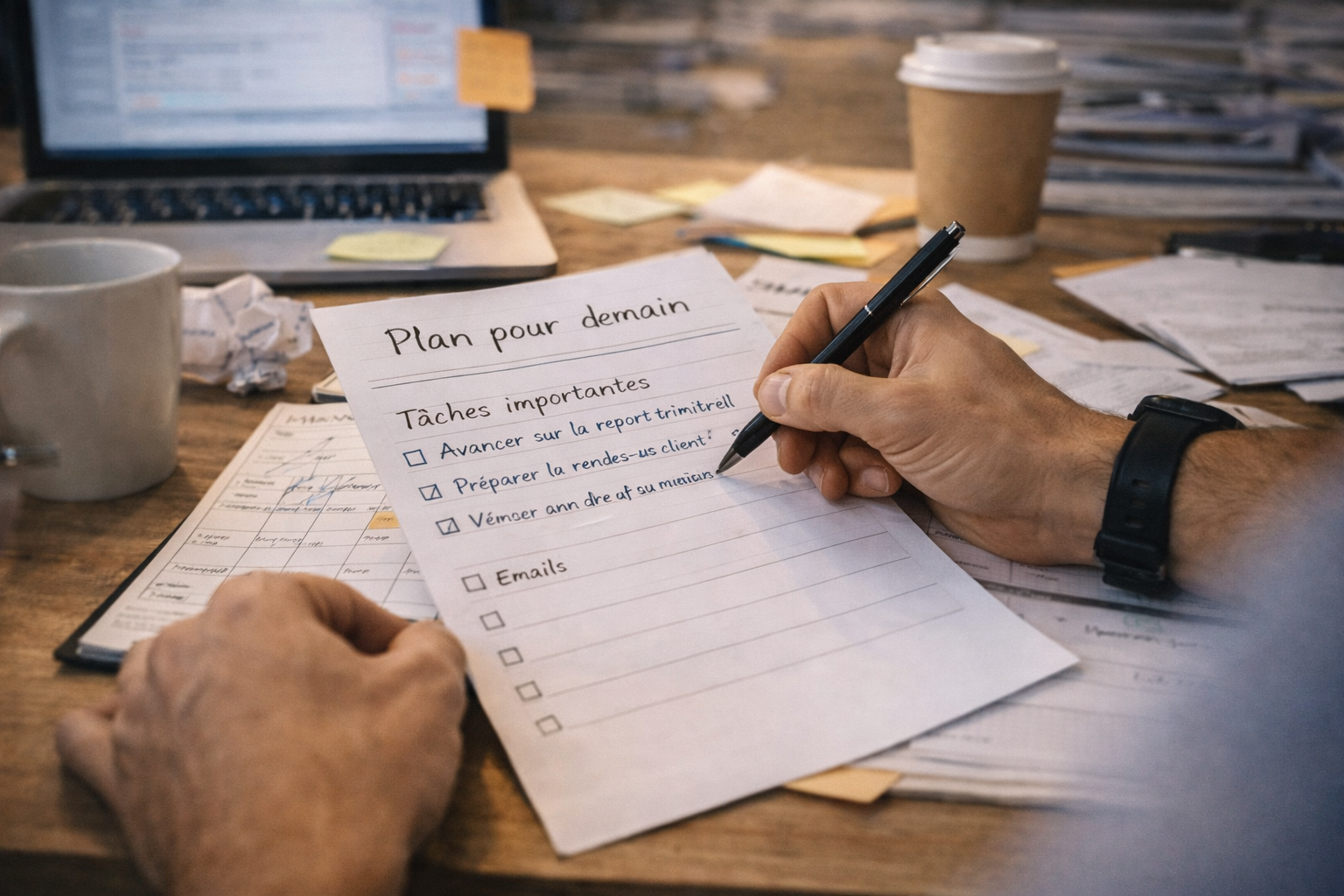 Le troisième problème, c’est la surcharge mentale. Quand tu gardes tout dans ta tête, tu passes ta journée à te rappeler ce que tu dois faire, à craindre d’oublier, à vérifier, à re vérifier, à improviser. La fatigue cognitive monte et tu deviens plus vulnérable aux distractions. Tu peux aussi tomber dans la procrastination, non pas par paresse, mais parce que tu ne sais pas par quoi commencer. Trop de choix, trop de pression, pas assez de structure.