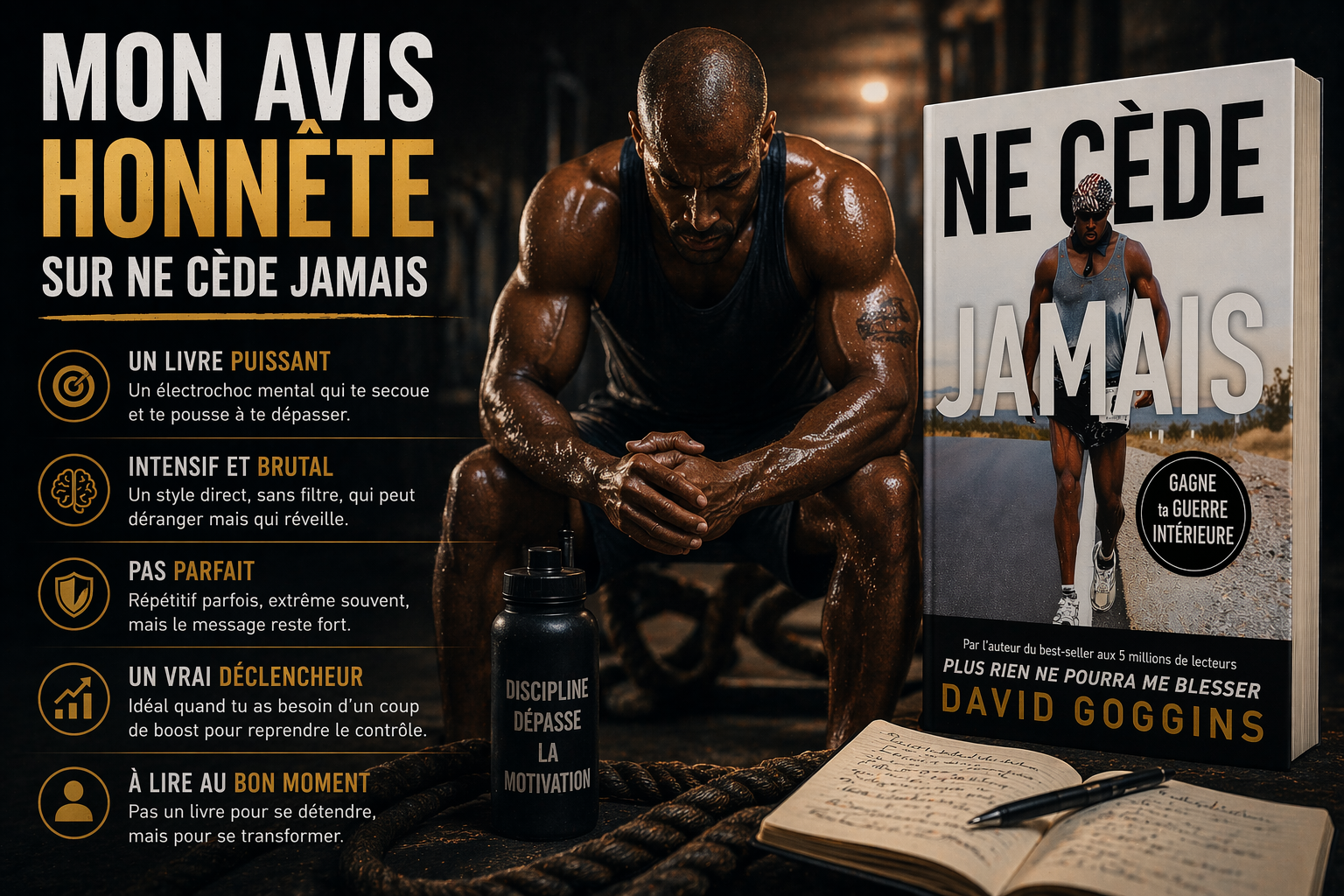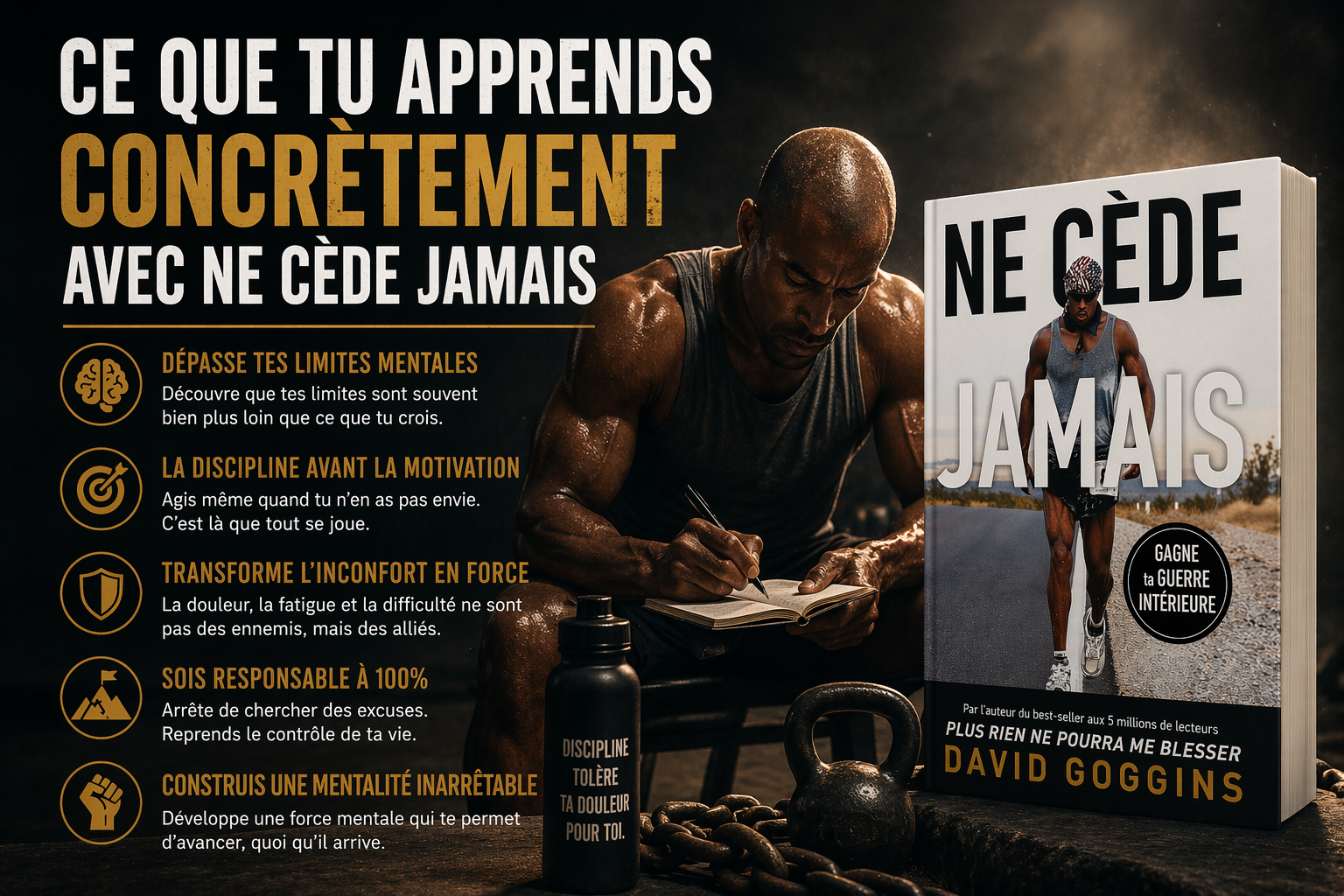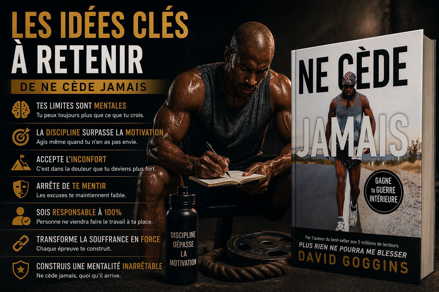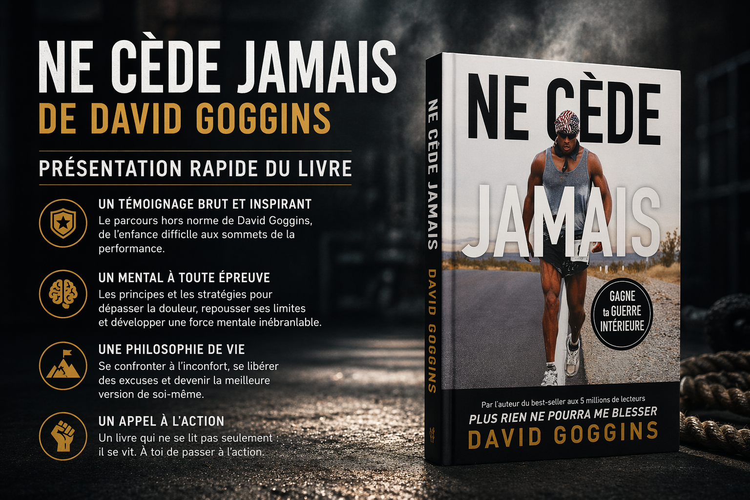 En ce sens, Ne cède jamais n’est pas juste un livre de motivation. C’est un livre sur la transformation du rapport à la douleur, à l’effort et à toi-même. Il ne t’apprend pas à te sentir mieux. Il t’apprend à devenir plus fort.