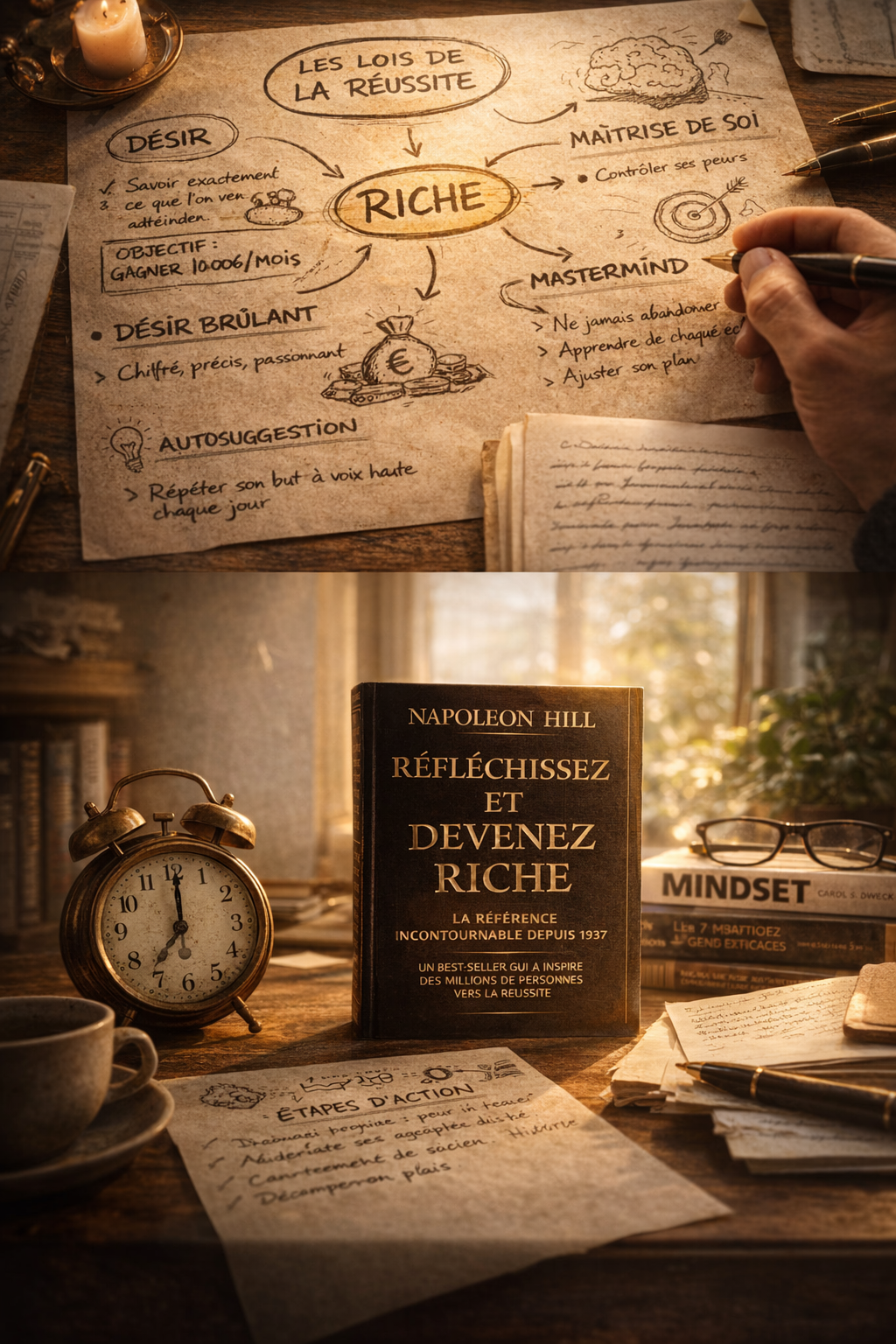 Réfléchissez et devenez riche est l’un des livres de développement personnel et de réussite financière les plus influents de tous les temps. Publié pour la première fois en 1937, il continue aujourd’hui d’être recommandé par des entrepreneurs, des investisseurs et des leaders du monde entier. Malgré son ancienneté, ses principes restent étonnamment actuels.