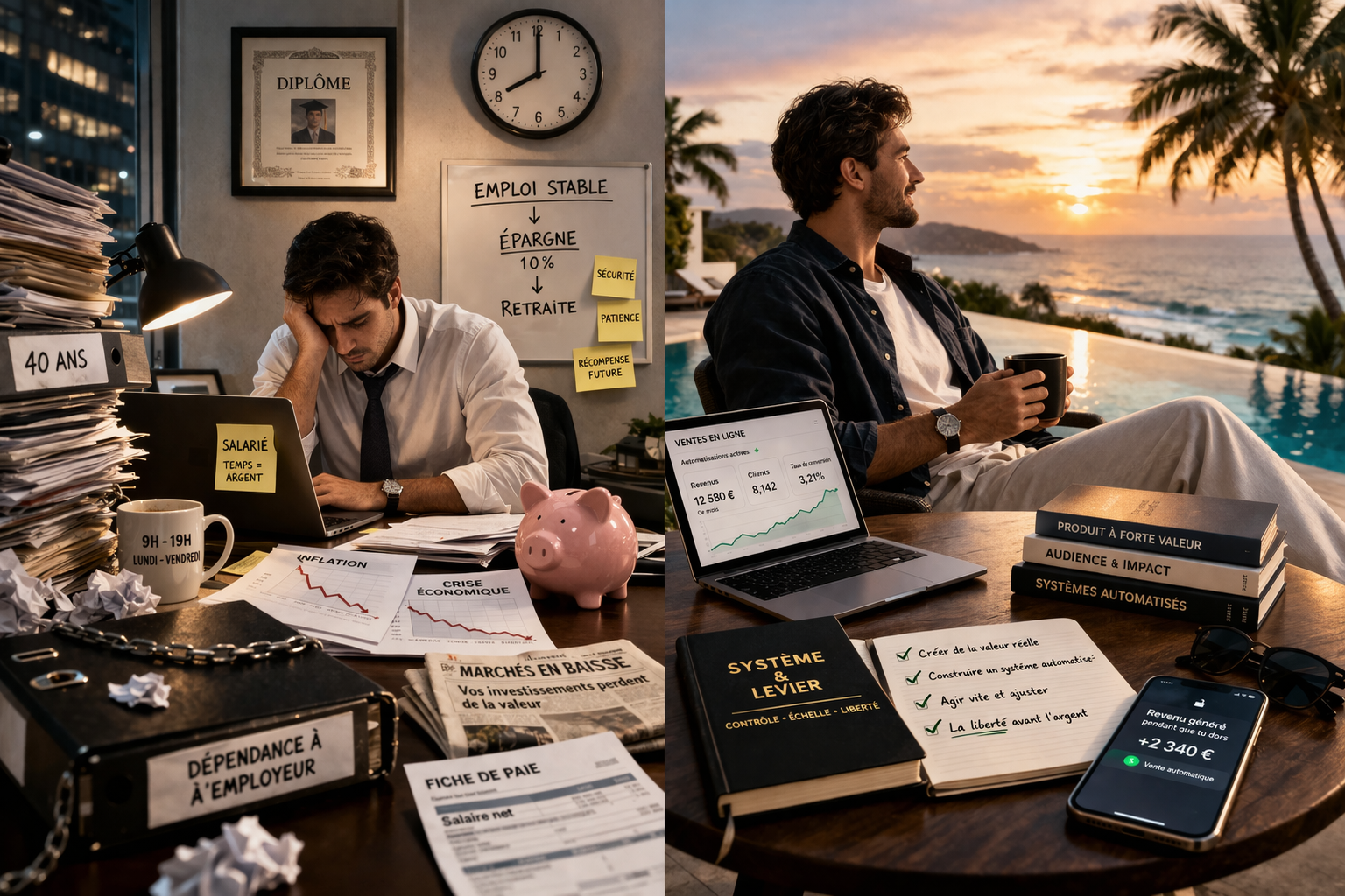 Travailler dur ne suffit pas. Pour atteindre la liberté financière, il faut travailler intelligemment, dans un système qui te permet de créer de la valeur à grande échelle et de contrôler ta vie.