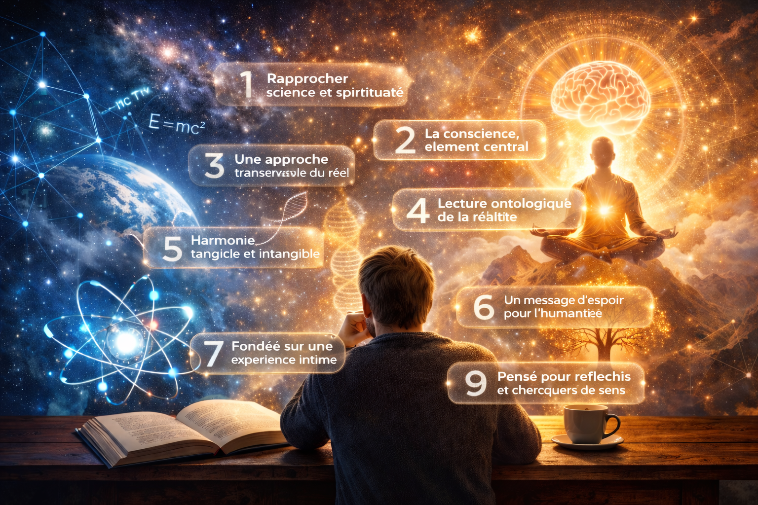 Pour un lecteur qui découvre ce titre, la meilleure manière de le situer est simple : c’est un essai de réflexion globale. Il parle de science, mais pas seulement. Il parle de spiritualité, mais pas de façon purement émotionnelle. Il semble chercher un point de rencontre entre les deux, avec une vraie volonté de cohérence.