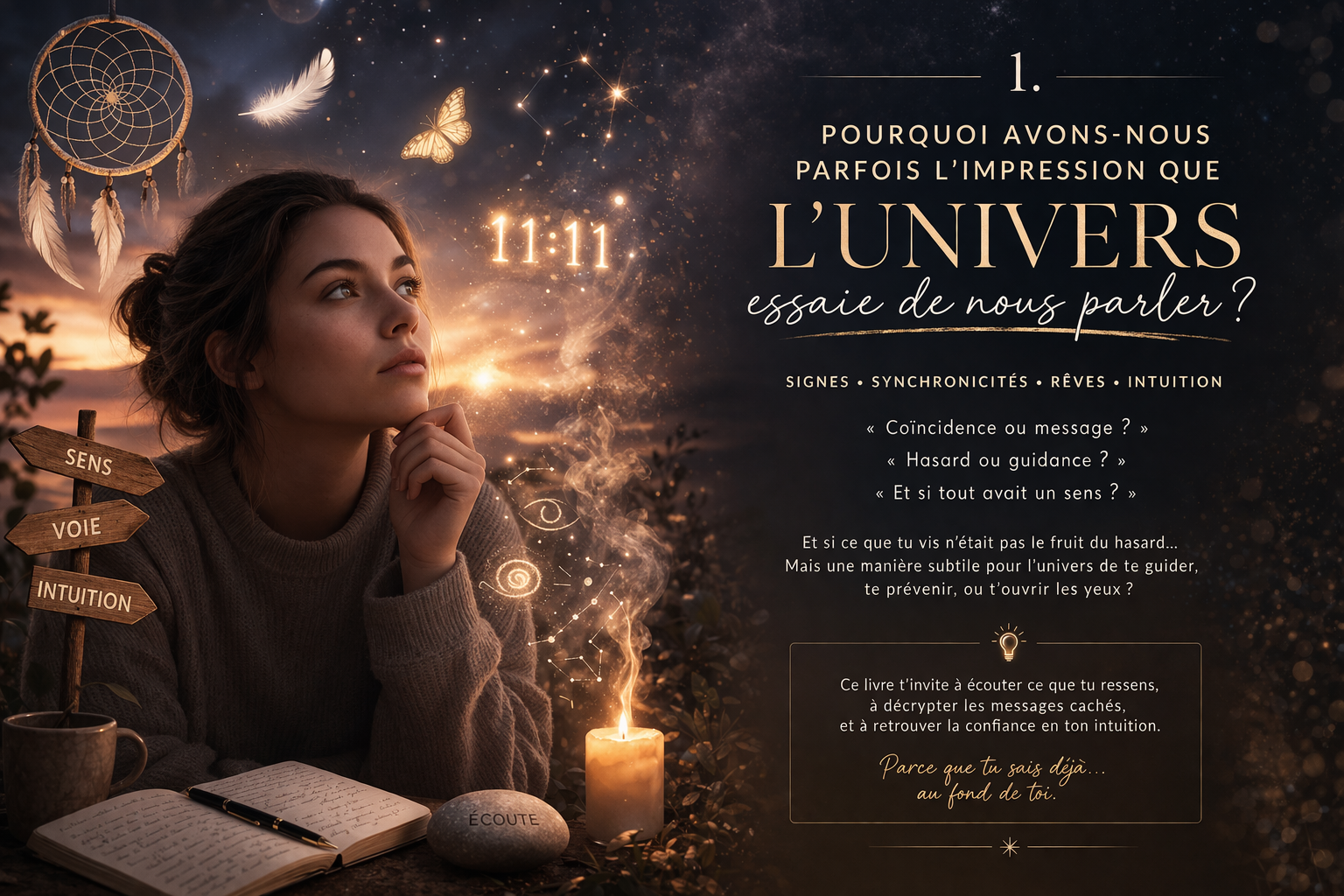 Il s’adresse aussi à celles et ceux qui s’intéressent déjà à des thèmes comme l’intuition, la spiritualité, les rêves, les signes de l’univers ou le développement personnel sensible. Si tu es le genre de personne à noter tes rêves, à remarquer des coïncidences troublantes, à ressentir fortement les ambiances ou à chercher des réponses plus profondes que celles offertes par le pur rationnel, tu peux te sentir très concerné par ce livre.
