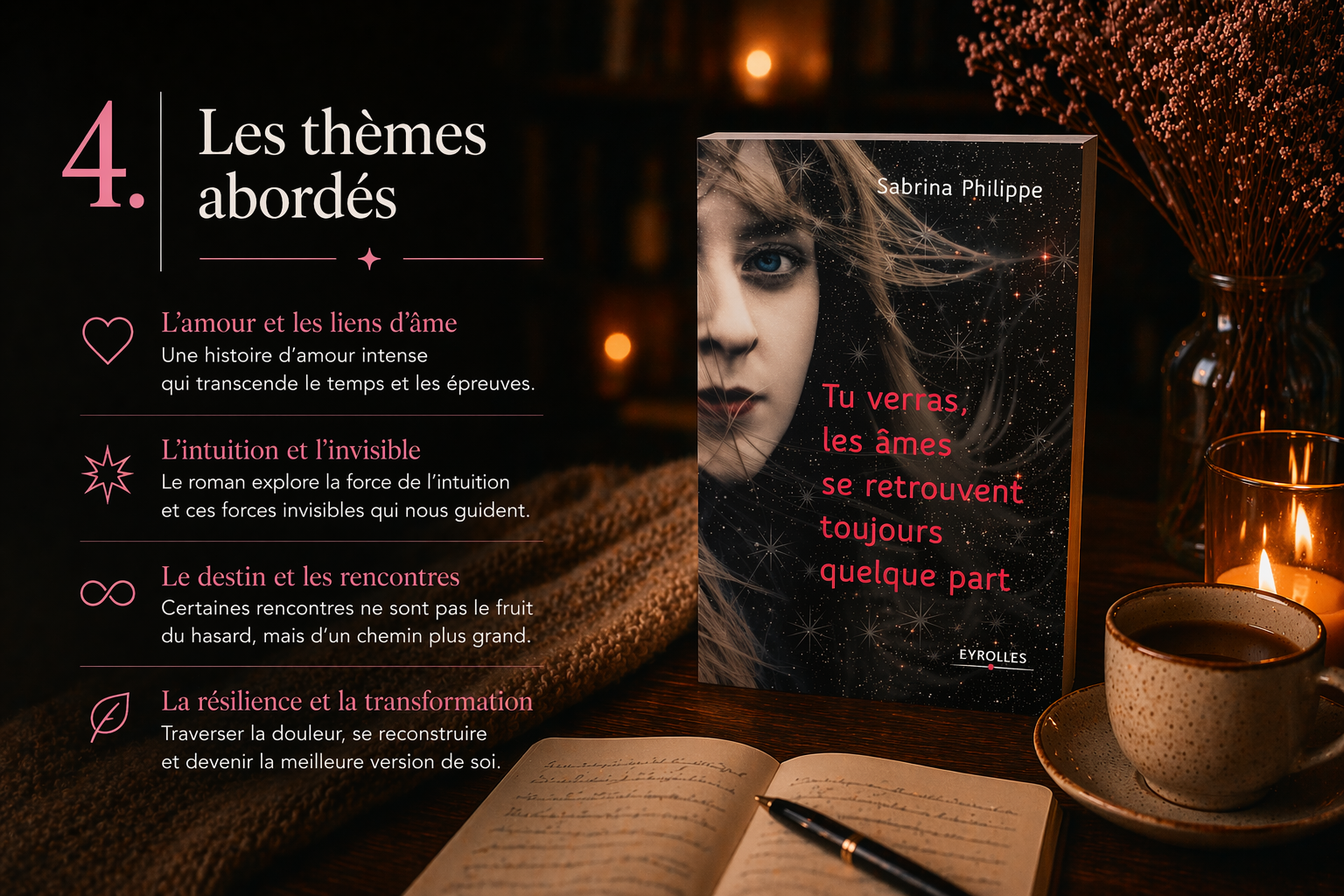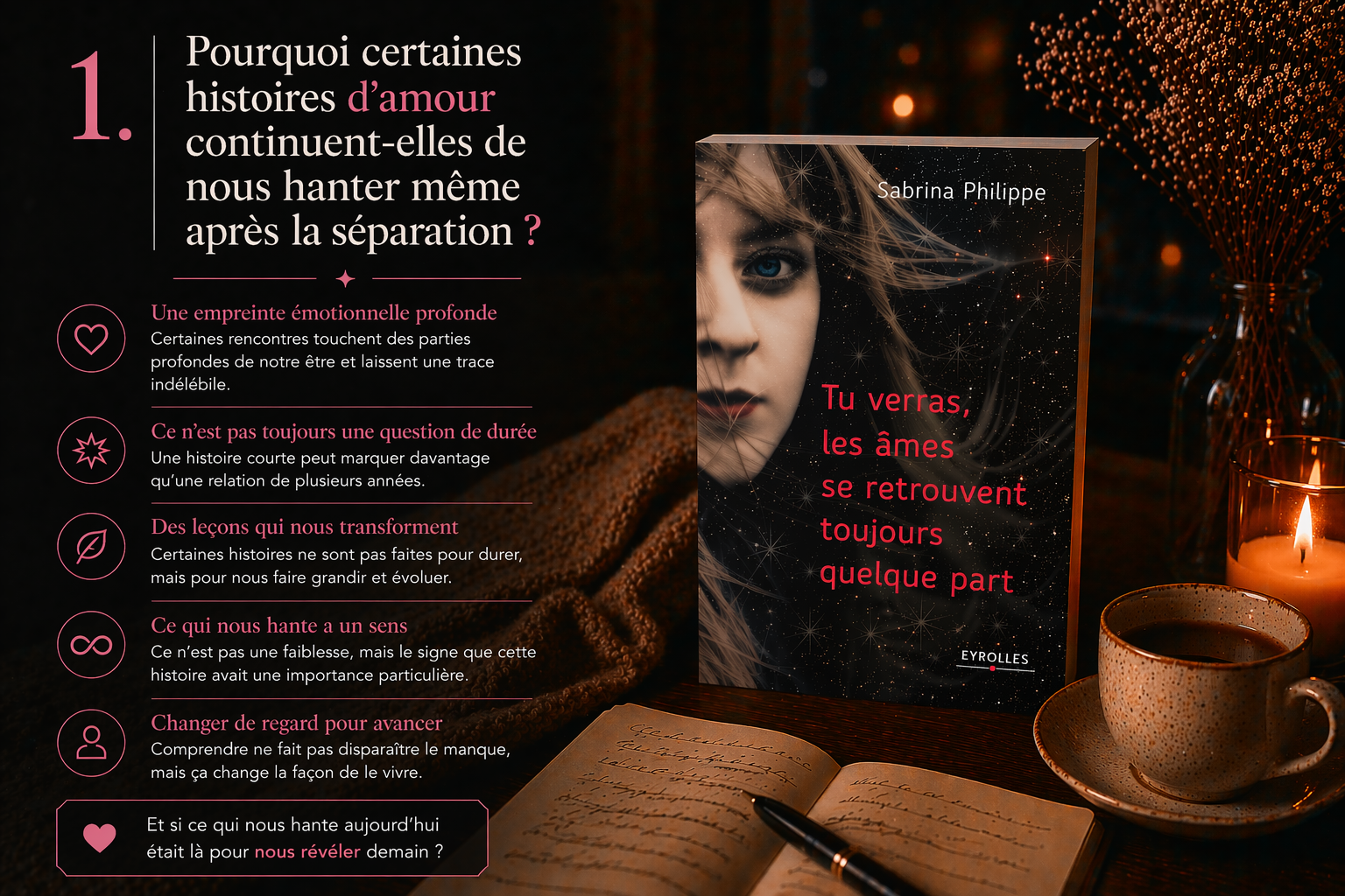 C’est dans ce contexte que des livres comme Tu verras, les âmes se retrouvent toujours quelque part prennent tout leur sens. Ils ne cherchent pas à effacer ces liens ni à les rationaliser à tout prix. Ils proposent une autre lecture : et si certaines rencontres étaient là pour nous apprendre quelque chose, même si elles ne durent pas ? Et si ce qui nous hante n’était pas une faiblesse, mais le signe que cette histoire avait une importance particulière dans notre parcours ?
