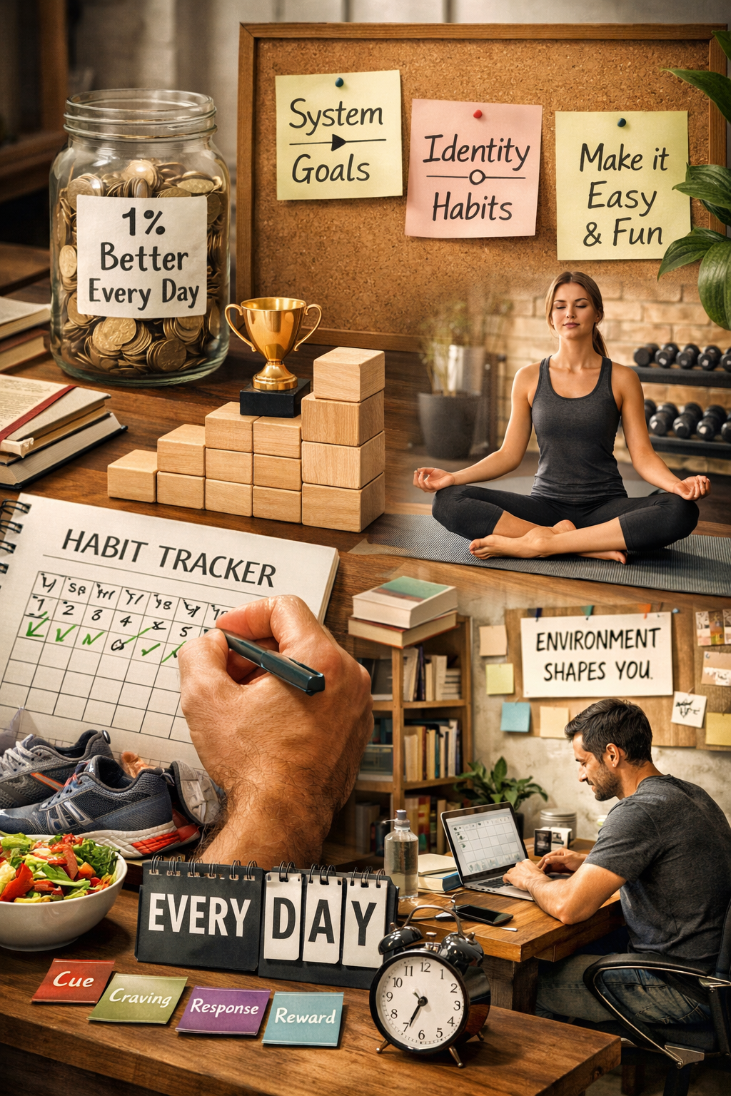 James Clear insiste sur un point essentiel : l’environnement est plus puissant que la motivation. Si ton environnement favorise les mauvaises habitudes, tu finiras par céder, même avec une forte volonté. À l’inverse, un environnement bien conçu rend les bonnes habitudes presque automatiques.